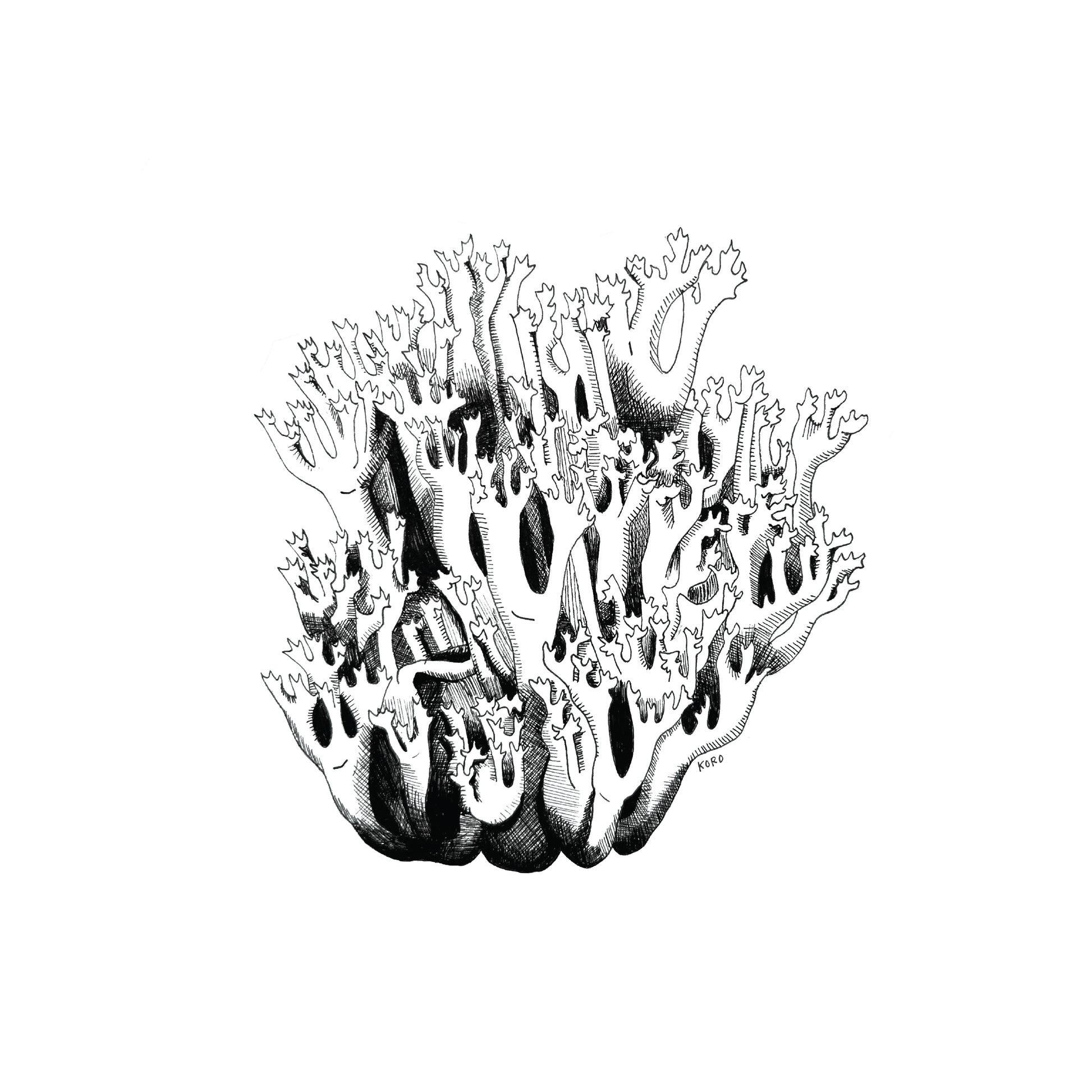 A finely detailed pen and ink illustration of a coral mushroom, printed on 8" x 10" Natural 190gsm, 100% cotton paper. This acid-free paper has a smooth, matte finish with no optical brighteners, ensuring a warm, off-white tone. Printed using archival-quality matte black ink for lasting depth and clarity.