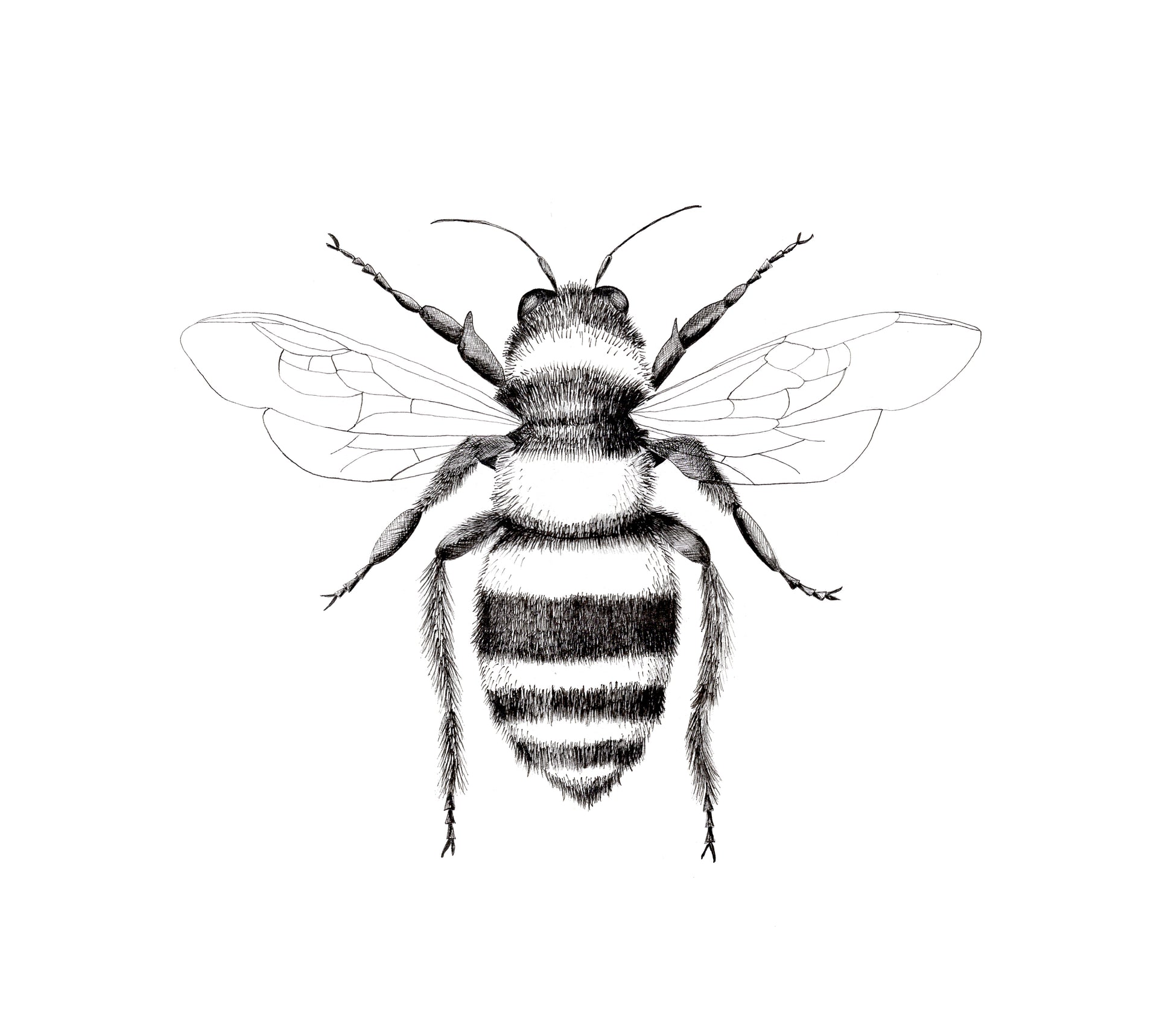 A finely detailed pen and ink illustration of a bumblebee, printed on 8" x 8" Natural 190gsm, 100% cotton paper. This acid-free paper has a smooth, matte finish with no optical brighteners, ensuring a warm, off-white tone. Printed using archival-quality matte black ink for lasting depth and clarity.