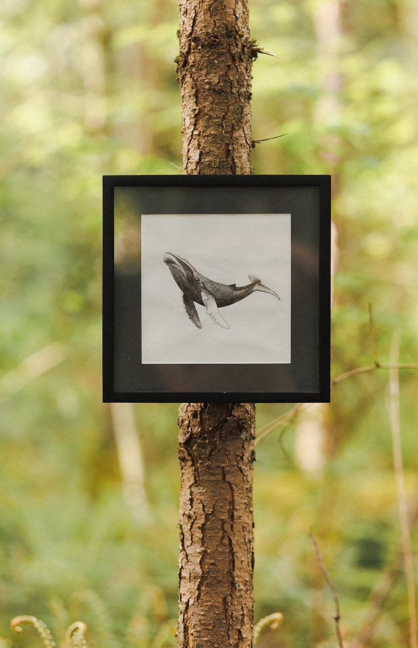 A finely detailed pen and ink illustration of a humpback whale, printed on 8" x 8" Natural 190gsm, 100% cotton paper. This acid-free paper has a smooth, matte finish with no optical brighteners, ensuring a warm, off-white tone. Printed using archival-quality matte black ink for lasting depth and clarity.